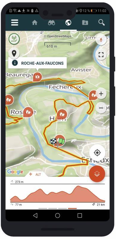 - Laissez-vous guider par l’application sur le terrain. Elle vous proposera un fond de carte avec le tracé de la randonnée, des informations historiques, culturelles et touristiques ! Le GPS intégré à votre appareil vous guidera et signalera si vous vous écartez du chemin.